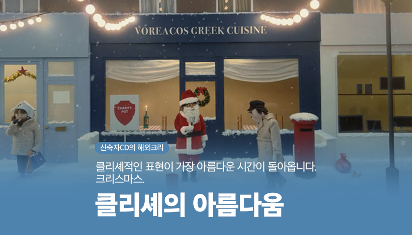 우리가 꿈꾸는 크리스마스는 크게 다르지 않습니다. 소중한 이들을 만나고 모두가 행복해지고 작지막 귀한 기적들이 일어나는 일. 브랜드도 같은 크리스마스를 이야기합니다. 마치 드라마가 해피엔딩으로 끝나길 가슴 졸이며 보는 것처럼. 우리가 원하는 삶은 모두 클리셰적인 것들이죠. 보고 싶은 사람을 마침내 만나고, 하고 싶은 일들을 이뤄내고, 갖고 싶은 것을 누리게 되는. 나쁜 사람은 착해지고, 외로운 사람들은 친구를 갖게 되는 해피엔딩.