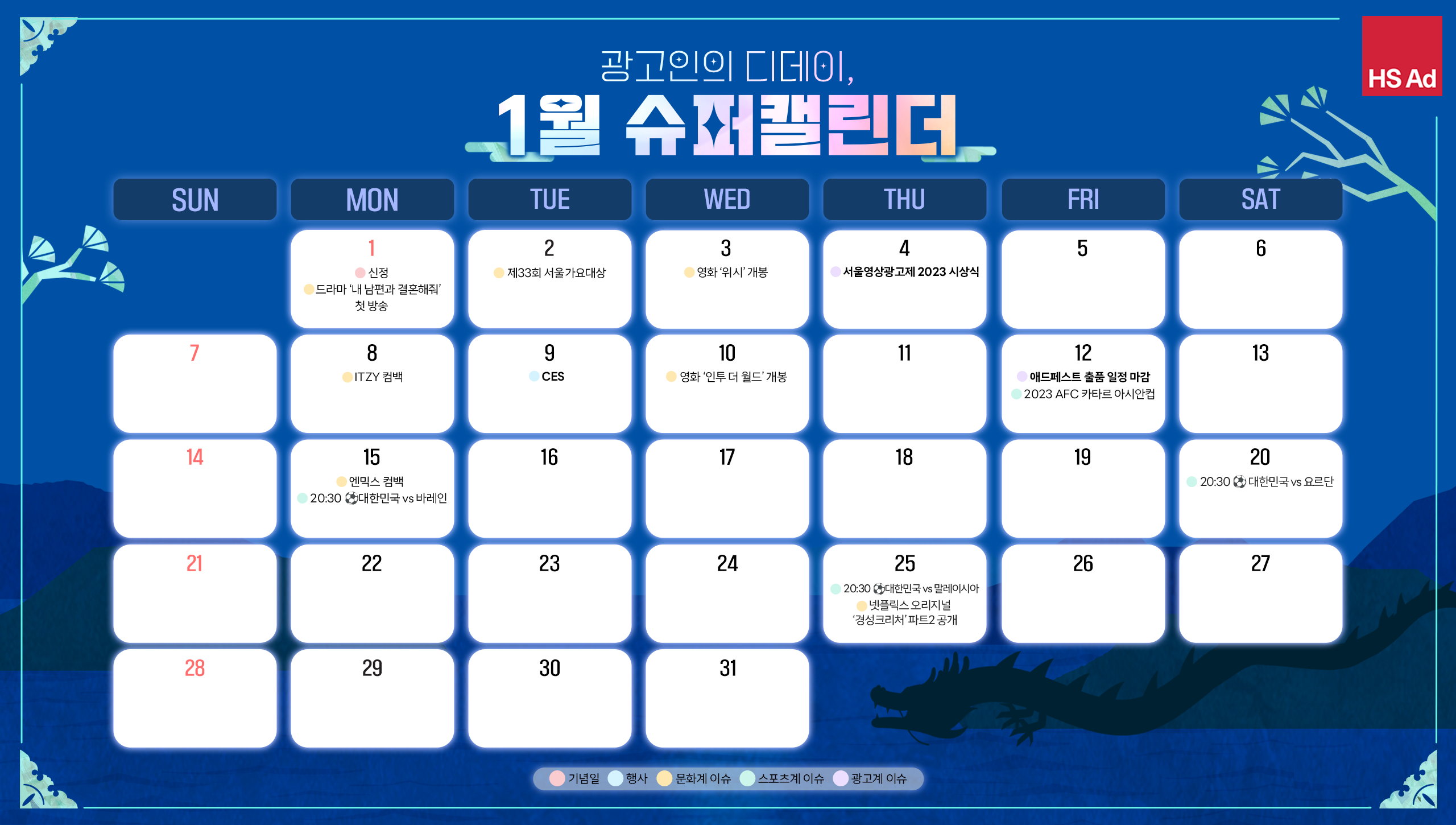 | [HS슈퍼캘린더] 광고인이라면 알아두어야 할 12월의 디데이🎅 (1) | 2023.11.09 |