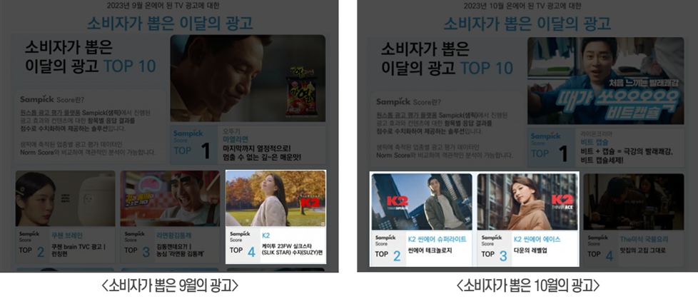 또한 모 조사 기관에서 매달 진행하는 소비자들이 뽑은 9월, 10월 광고 TOP10 리스트에 실크스타, 씬에어 슈퍼라이트, 씬에어 에이스가 모두 리스트에 뽑히는 뿌듯한 성과도 보였습니다. 아직 11월 리스트는 발표되지 않았지만 씬에어 포스, 씬에어 앱솔루트도 순위에 들 수 있을지 기대를 해보겠습니다.