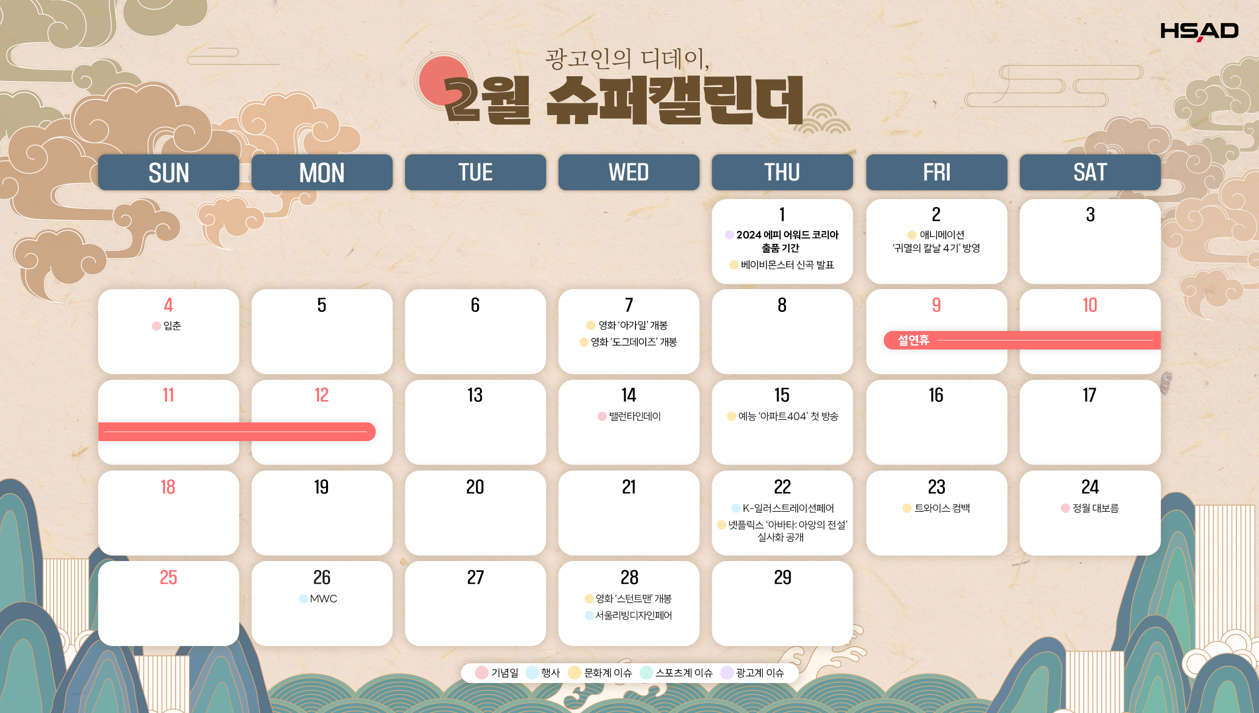| [HS슈퍼캘린더] 광고인이라면 알아두어야 할 03월의 디데이🌱 (1) | 2024.02.06 |