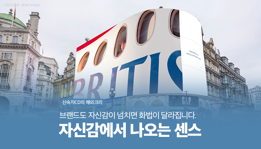 그들의 표정을 보여주기 위해 비행기 창문을 확대하고 대신 비행기에 씌어진 로고는 과감하게 잘라 버렸습니다. 그들의 새로운 광고엔 브리티시 에어웨이스가 다 보이는 콘텐츠는 없습니다. 로고 폰트와 컬러만 봐도 어떤 항공인지 모두가 알 수 있다는 자신감. 덕분에 콘텐츠는 오히려 강한 인상을 남기죠. 영상 콘텐츠는 창문 안의 사람 외엔 아무것도 움직이는 게 없어 스틸인가 착각할 정도로 심플합니다. 크리에이티브해지려면 과감해져야 하고, 버릴 줄도 알아야 한다는 원칙. 그들은 실제로 실행할 만큼 그 원칙을 잘 알고 있습니다.