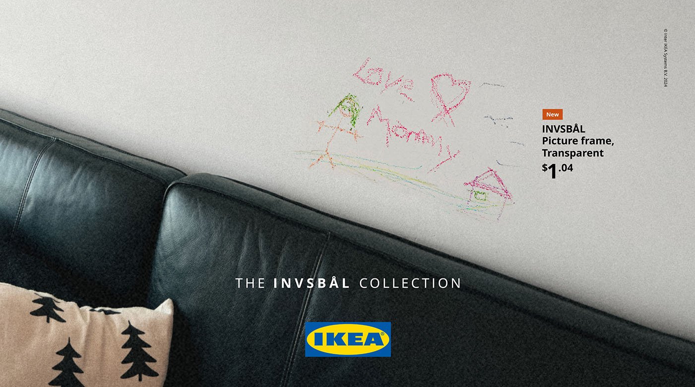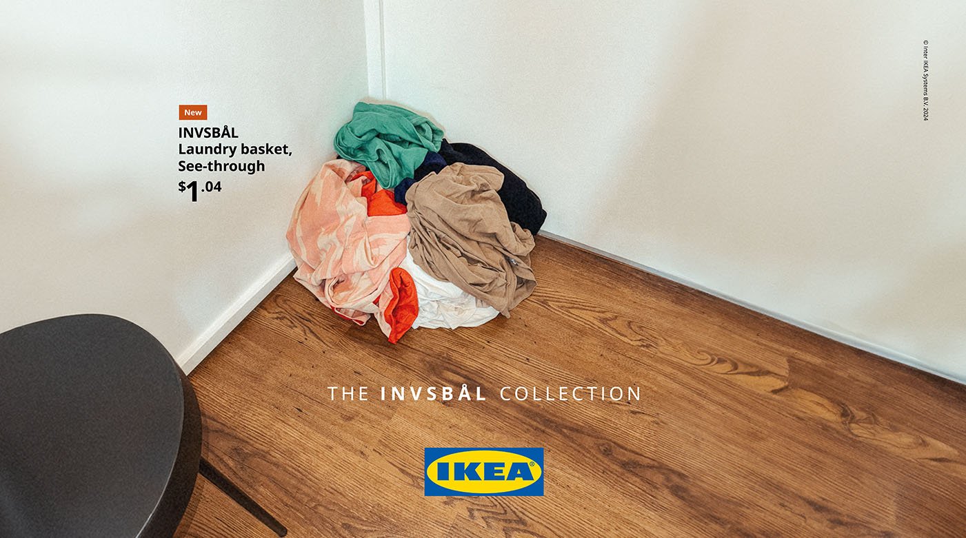 누구나 아는 브랜드 이케아는 4월 1일 만우절을 맞아 아예 제품도 생략했습니다. 오히려 ‘보이지 않는’ 가구 시리즈(The invisible collection)를 선보였죠. 말하자면 이런 겁니다. 방구석에 잔뜩 쌓여 있는 옷가지들. 그 옆엔 ‘see-through laundry basket'이라고 제품명이 보입니다. 속이 보이는 투명한 빨래 바구니이기에, 옷이 아무 데나 널브러져 있는 게 아니라 투명 바구니에 담겨 있는 거란 식이죠. 소파 위 아이들이 크레파스로 그린 낙서 옆엔 ‘보이지 않는 액자’라고 상품명이 씌어 있습니다. 바닥에 흩어져 있는 신발 옆엔 ‘보이지 않는 신발장’이라고 소개하죠.