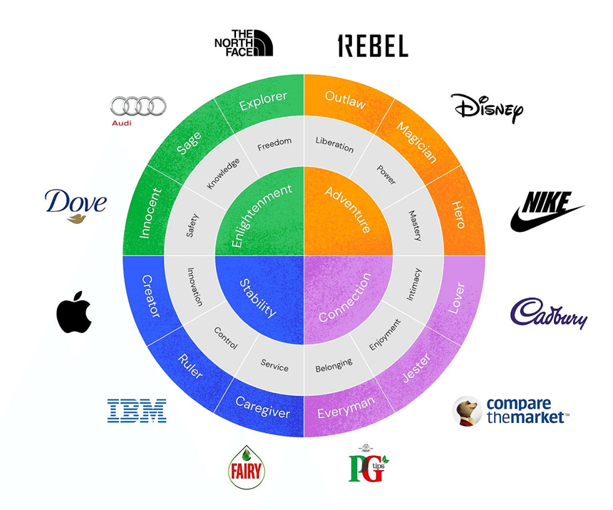 융은 원형을 “신화의 구성 요소이자 동시에 무의식적 기원의 산물로서 현실에서 실제로 발생하는 집합적 성격의 형태 또는 이미지”라고 정의했다. 원형은 문화보다 더 깊은 보편적인 인간 존재 방식이며, 원형을 신과 여신으로 의인화한 고대인들에게 중요했던 것처럼 오늘날 기업에도 중요하다. 융은 칼 융은 인간의 삶에 관계 우위를 표현하는 타고난 성향으로 12가지 ‘융의 원형’을 정의했다. [1. 현자(Sage) - 지성과 지식, 2. 순수한 사람(Innocent) - 낙천과 행복, 3. 탐험가(Explorer) - 신기함과 모험에 개방적, 4. 지배자(Ruler) - 안정감과 권력, 5. 창조자(Creator) - 자유와 상상력, 6. 돌보는 사람(Caregiver) – 모성보호, 7. 마법사(Magician) - 성장과 변화, 8. 영웅(Hero) - 활력과 명예, 9. 애인(Lover) - 열정과 친밀감, 10. 반항아(Rebel) - 독립과 혁신, 11. 광대(Jester) - 즐거움과 유머, 12. 보통 사람(Everyman) - 소속감과 현실감]이다. 이 12가지 기본 원형은 성공한 브랜드에도 그대로 적용할 수 있다.
