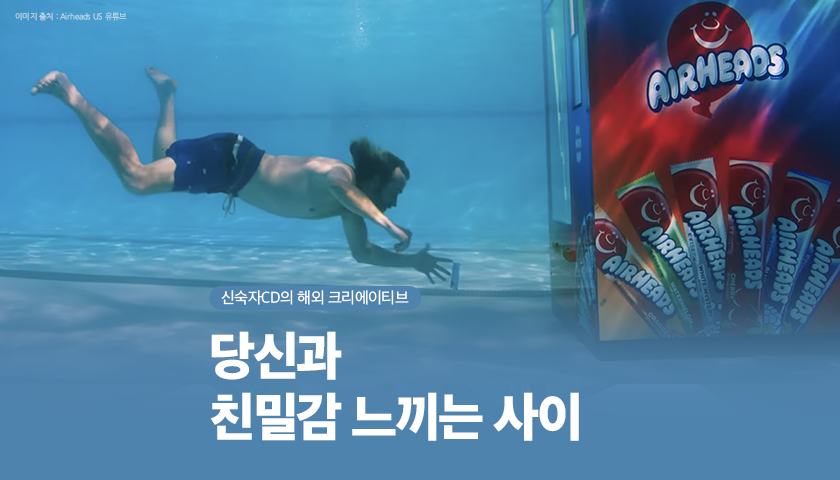 성인들은 어렸을 때만큼 수영을 즐기지 않는다고 합니다. 73퍼센트의 성인들은 수영장 벤치에 누워 태닝 하면서 시간을 보내죠. Airheads는 그들을 다시 물 속으로 끌어들여 '물속에서의 추억'을 갖게 해주고 싶었습니다. 그래서 특단의 조치를 생각해 냈죠. 캔디 자판기를 물속에 빠뜨리는 겁니다. 일명 ‘물 속 자판기(Underwater Vending Machine)’입니다.