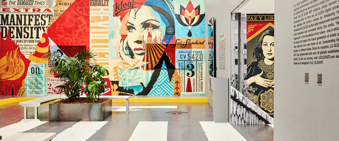 3월 진행되었던 프리즈 로스앤젤레스에선 세계적인 그래피티 아티스트이자 사회 운동가인 셰퍼드 페어리와 협업해 ‘평화와 정의(Peace and Justice)’를 주제로 글로벌 이슈를 다루면서 긍정적인 변화를 촉구하는 벽화작품을 LG OLED ART로 새롭게 구현했습니다.