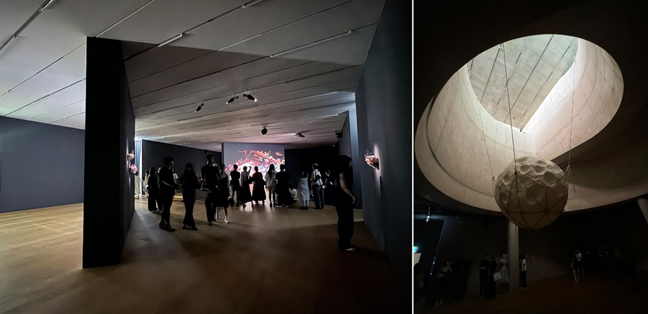 내부 공간 또한 건축의 특징을 잘 반영하여 시원한 개방감과 묵직한 규모감을 동시에 느껴볼 수 있는데요. 투명도가 높은 유리의 사용으로 어디서든 내외부가 잘 보여 공간이 그대로 이어지는 듯한 열린 느낌을 주는 것도 특징입니다. 전시가 열리는 공간이다 보니, 군더더기 없는 선과 연속적인 흐름을 유도하는 마감재의 사용으로 콘텐츠에 따라 다른 분위기를 만들어내는 것도 이 공간에서 만날 수 있는 재미입니다.