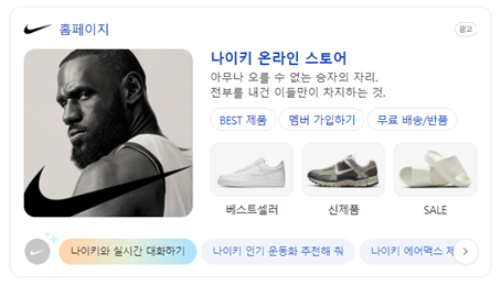 네이버에서 내놓은 국내 최초 생성형 AI 활용 광고 ‘CLOVA for AD’도 가지고 있는 정보를 미리 짐작하여 광고물이 나오는 것이 아닌, 소비자가 주체적으로 본인이 원하는 상품을 찾을 수 있도록 여정을 돕는 설계이다. 소비자가 필요로 하는 것에 대한 주입식 추천도 좋지만, 사전에 소비자가 어떤 ‘맥락’에서 제품을 필요로 하는지에 대한 판단이 충분히 인지가 되어 있어야 한다. 그 예시로 아래 나이키의 경우, 제품 추천에 앞서 무엇을 필요로 하는지 맥락을 주입시켜줄 수 있는 ‘질문’이라는 경로가 있다. 즉, 매력적인 제품을 앞세워 호기심이 가는지 확인해 보는 것보다 더 안전하게 소비자의 관심을 끌어내는 것이다.