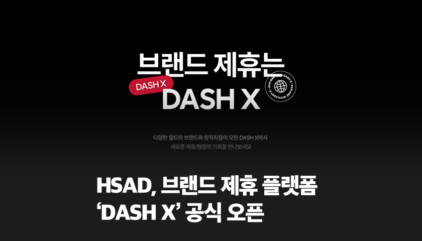HSAD가 브랜드와 창작자들이 모여 자유롭게 교류하고 협업할 수 있는 브랜드 제휴 플랫폼 ‘DASH X(이하 대시엑스, dashx.co.kr)’를 10일 공개했습니다.