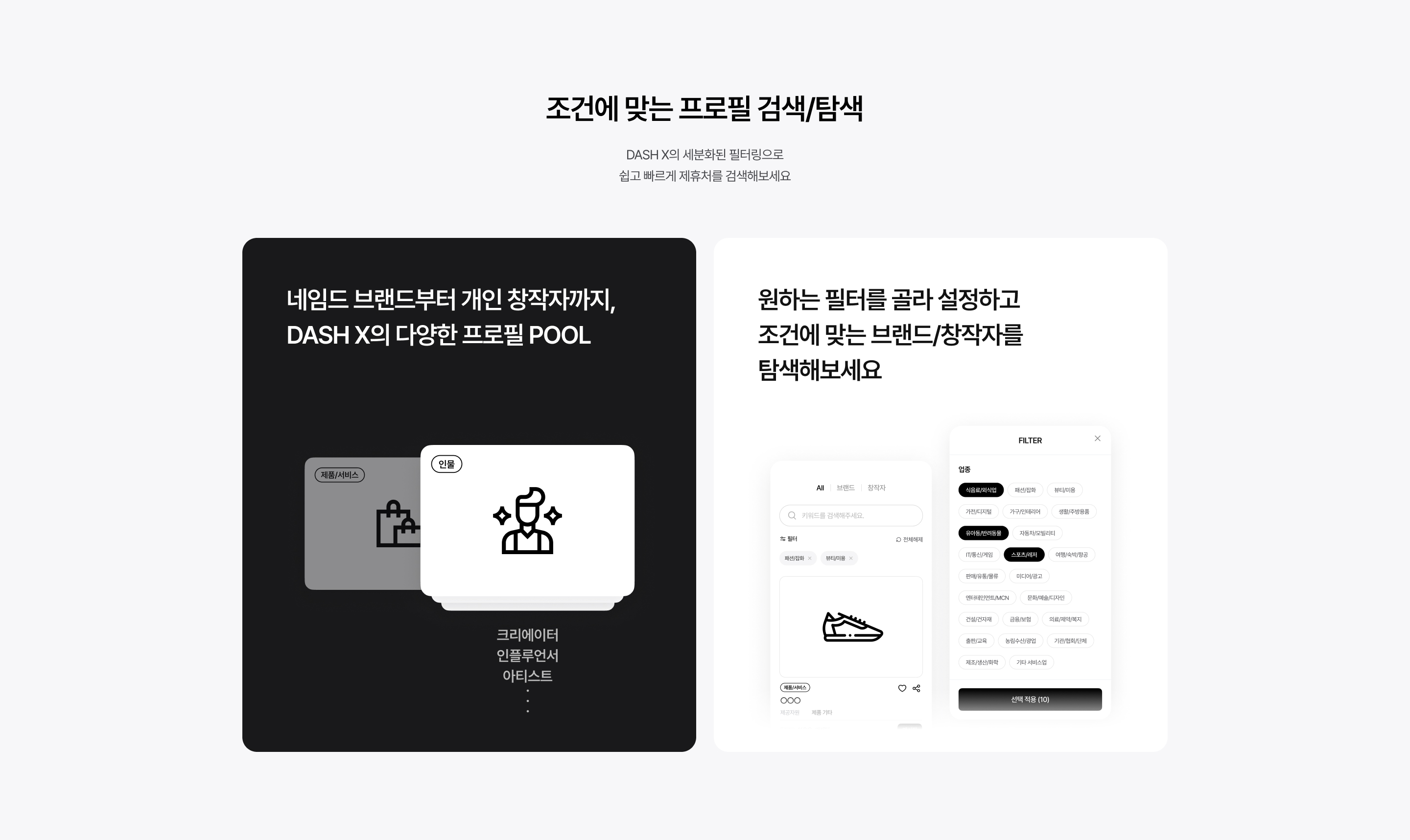 ‘대시엑스’는 온라인 플랫폼에서 브랜드 마케팅 담당자, 기업의 제휴 담당자, 개인 창작자가 모여 자유롭게 협업 파트너를 찾아 교류할 수 있는 기회를 제공하고, 제휴 목적과 관심사에 맞게 제휴 파트너를 찾아 메시지를 통해 협업을 제안할 수 있는 것이 특징입니다.