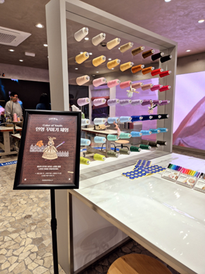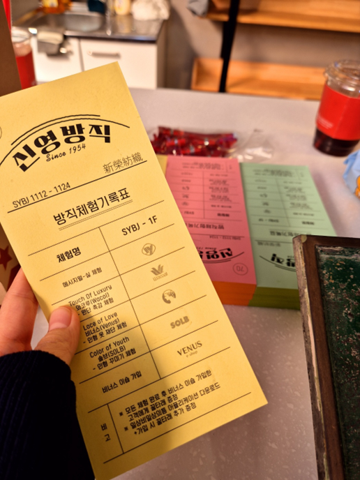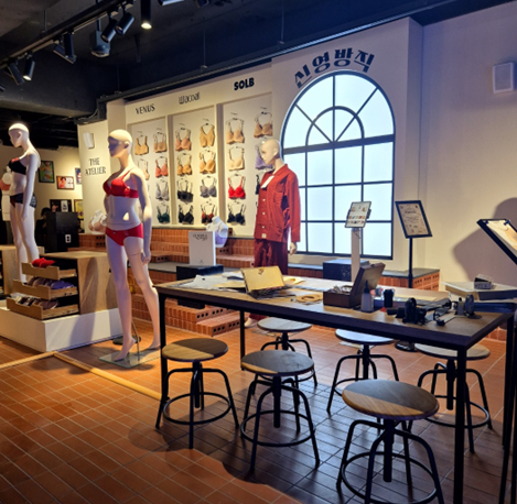 피팅을 경험한 후에는 피팅한 제품을 바로 구매할 수 있도록 제품들도 함께 전시했다. 신영와코루가 지난 70년간 한국 여성들의 브라 제조를 위해 모아 놓은 자료와 실제 브라 디자인에 사용되는 패턴지, 원단 등등도 대기하면서 구경할 수 있고 장인처럼 마네킹의 가슴 치수를 재보는 체험도 가능하다. 브라 치수 재는 것에 익숙하지 않은 소비자들에게 자가 확인이 가능하도록 설계한 체험이다.