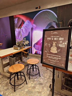 Love in Lace 인형 옷 재단 체험 (비너스 존): 원하는 레이스를 골라 토끼에게 입힐 수 있다. 브라 디자인 중 레이스를 가장 잘 활용하는 비너스를 상징한다.