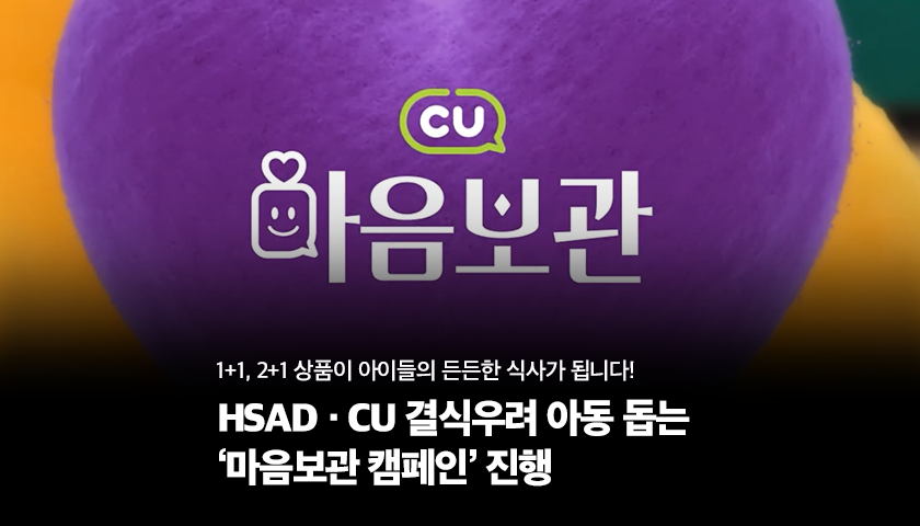 HSAD가 CU 편의점과 손잡고 CU앱인 포켓CU에 보관한 +1 증정 상품을 기부하는 ‘마음보관 캠페인’을 진행합니다.