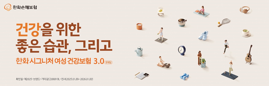 몸과 멘탈의 금수저가 되기를 바란다면, 한 번쯤 <한화 시그니처 여성 건강보험 3.0>의 이야기에 귀 기울여 주시고, 2025년에도 “여성 웰니스 리딩 파트너”로 나아가기 위해 진심을 다하는 한화손해보험의 행보도 지켜봐 주시길 바랍니다.