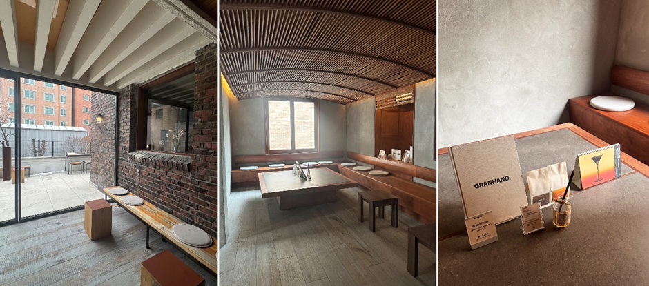 고객의 시간을 점유하기 위해 카페 기능을 도입하는 브랜드는 많이 볼 수 있습니다. 이런 경우 공간 그 자체가 브랜드를 대표할 수 있도록 디자인하는 것이 가장 중요한 부분이라 할 수 있는데요. 그랑핸드는 그런 의미에서 마치 오래된 친구 집에 방문하는 느낌을 주듯 구옥 구조를 살리면서 자연물에 가까운 원재료를 조화롭게 배치함과 동시에 의도적으로 드러낸 마감처리를 통해 자연스러움을 강조한 디자인이 브랜드 지향점과 어울리게 잘 만들어진 공간입니다.