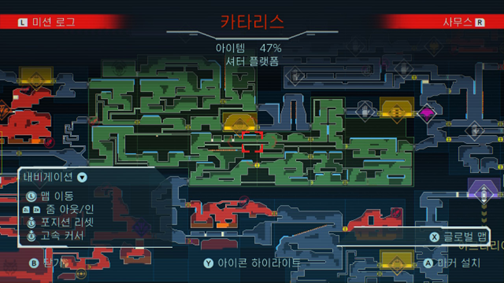 방법은 따로 있는데. 처음 불시착 때 잃어버렸던 주인공의 능력이 7개 미로에 구석구석 숨겨져 있다. 그것들이 왜 거기 숨겨져 있는지는 모르겠다만. (이 우주를 만든 놈들, 또 네놈들이냐...) 더 높이 뛸 수 있는 능력. 자신의 모습을 감추는 능력. 외부 온도로부터 자신을 지키는 능력. 순간 전력질주하는 능력. 하나씩 하나씩 되찾고나서 오면, 저 앞에 희미하게 보이게 된다. 미로 한 구석탱이 벽인 줄 알았던 것이, 실은 밟고 뛰어넘을 수 있는 발판이었다는 사실을.