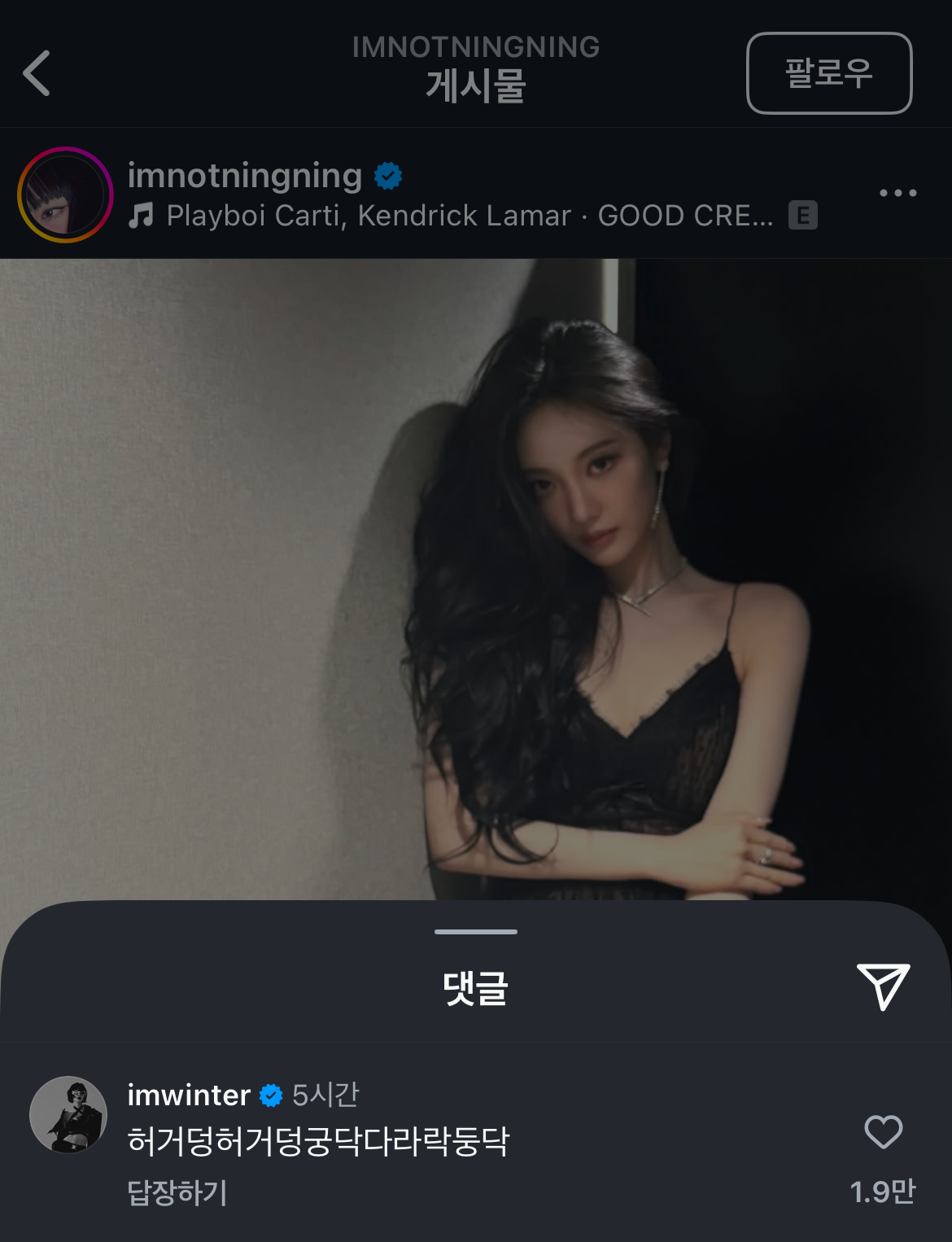 카리나가 닝닝에게 허거덩의 뜻을 설명해 줬다는 썰과 함께 그들의 SNS에서 허거덩을 쉽게 만나볼 수도 있답니다!