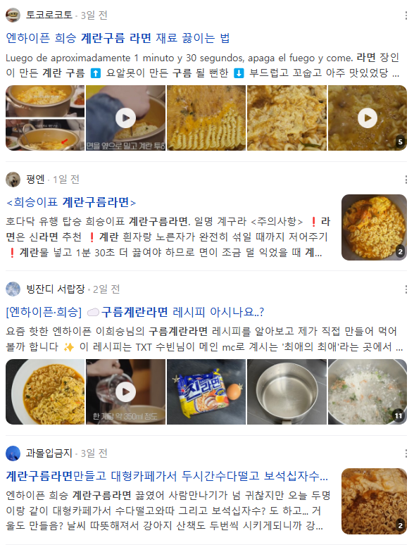 그룹 엔하이픈의 멤버 '희승'이 혜리의 유튜브 콘텐츠 '혤스클럽'에 출연하여 소개한 '계란 구름 라면'이 화제예요.