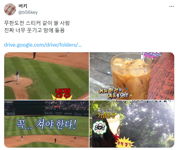 특히 없는 게 없는 예능 '무한도전' 등의 자막을 활용하여, 스티커를 만들어 공유하는 사람도 늘고 있어요. 공놀이에 최적화된 대사가 많아 스포츠팬들의 갤러리 한편을 차지하고 있다는 사실.