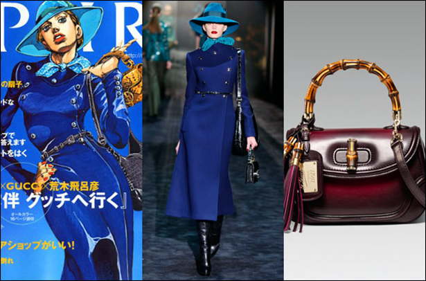 <죠죠>에 등장하는 캐릭터들은 패션까지도 기묘해. 그 기묘함을 인정하는 명품 브랜드들과 콜라보를 진행하기도 했지. 구찌, 불가리, 메르세데스-벤츠 등 다양한 브랜드들이 <죠죠>와 콜라보를 진행했어!