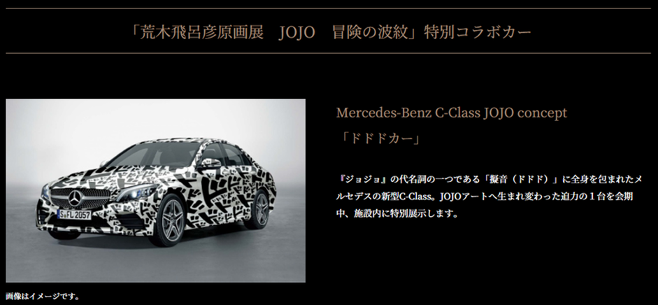 어둠의 기운이 다가오기 시작할 때 화면을 가득 채우는 고고고고(ゴゴゴゴ) 긴장감이 폭발하기 직전의 상황에서 심장박동처럼 들리는 ‘도도도도(ドドドド). 이 두 가지 폰트는 죠죠하면 떠오르는 대표적인 디자인이 되었어. 벤츠는 죠죠와 콜라보하여 ‘도도도 컨셉카’를 만들기도 했지.