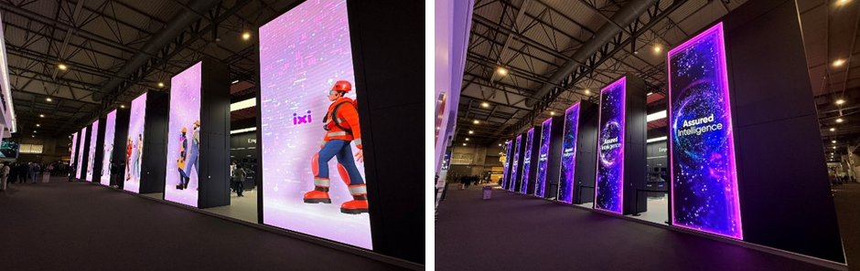 LG유플러스는 ‘Assured Intelligence(안심지능)’이라는 새로운 AI 철학을 중심으로 전시관 전체의 스토리라인을 구성했습니다. AI의 기술력보다 신뢰성과 일상 밀착성을 강조하는 방향으로 기획되었습니다. ixi솔루션을 바탕으로 안심, 동료, 상생 등의 키워드를 테마별 존에 나눠 전달했습니다.