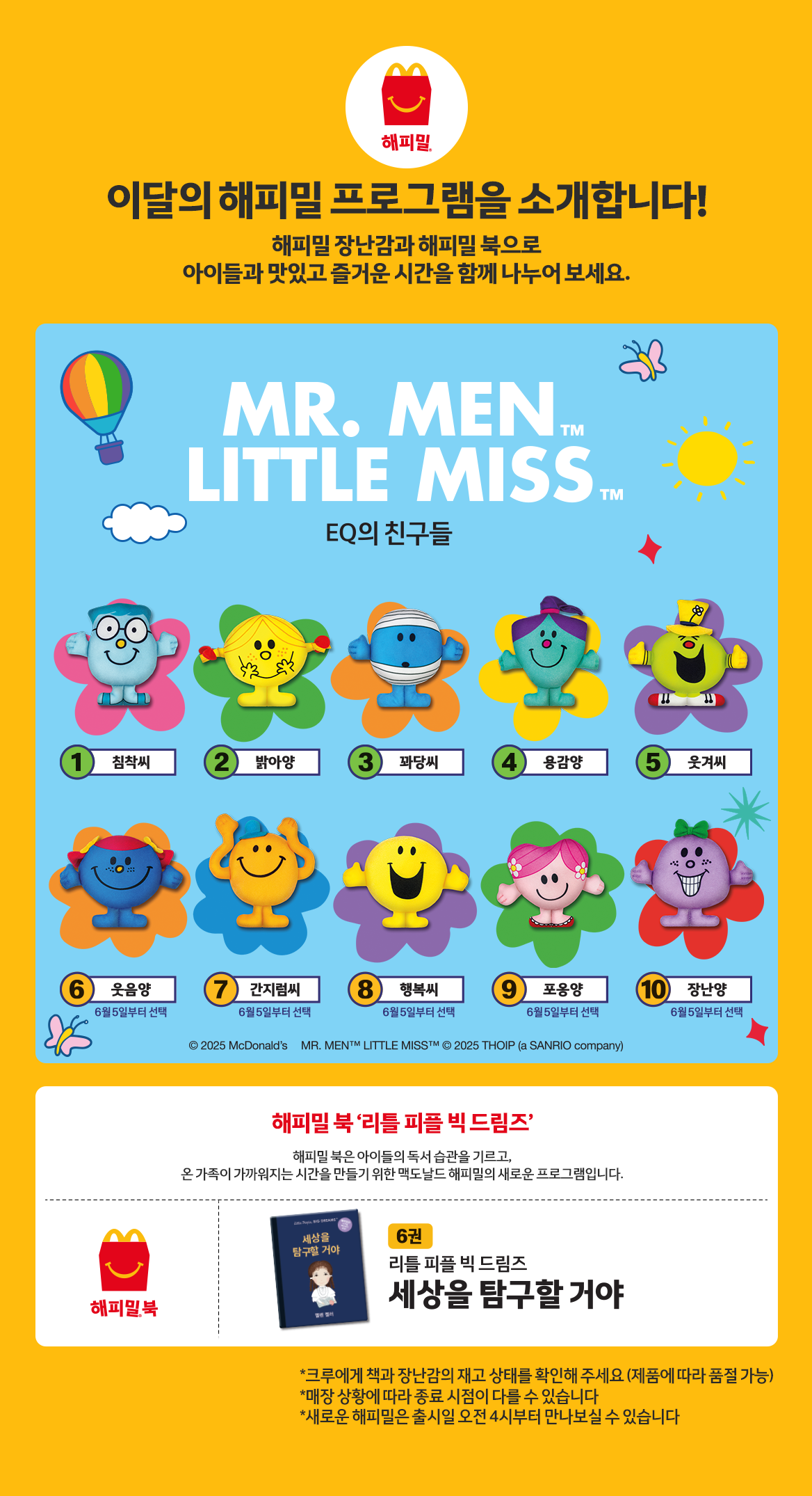 추억의 캐릭터 꽈당씨를 기억하시나요? EQ의 친구들이 해피밀 장난감으로 출시됐어요. 05월 말부터 침착씨, 밝아양, 꽈당씨, 용감양 그리고 웃겨씨 총 5명의 캐릭터를 만나볼 수 있으며, 6월 5일부터는 웃음양, 간지럼씨, 행복씨, 포옹양 그리고 장난양과 같이 새로운 5종의 캐릭터가 추가로 출시된다고 해요!
