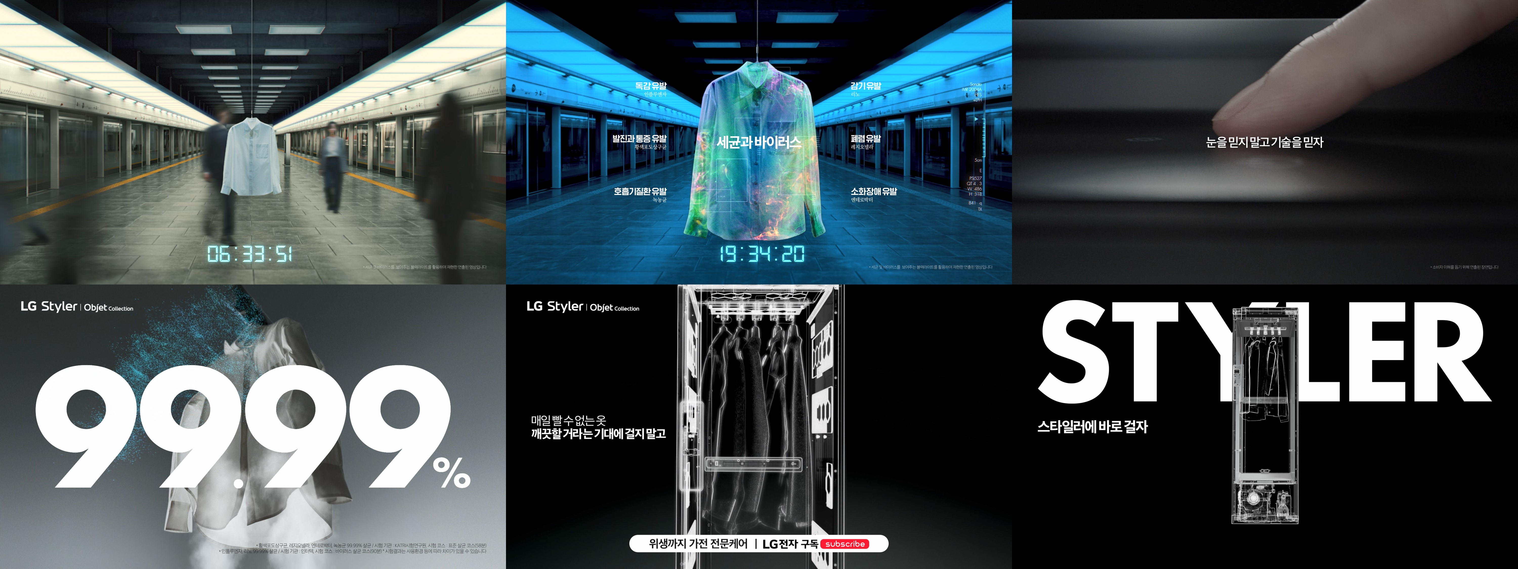 의류가 얼마나 쉽고 빠르게 오염될 수 있는지를 시각화하여 경각심을 높이고, 해결책으로 LG 스타일러를 제시해 새로운 필수가전으로 각인시키는 캠페인을 전개했습니다.