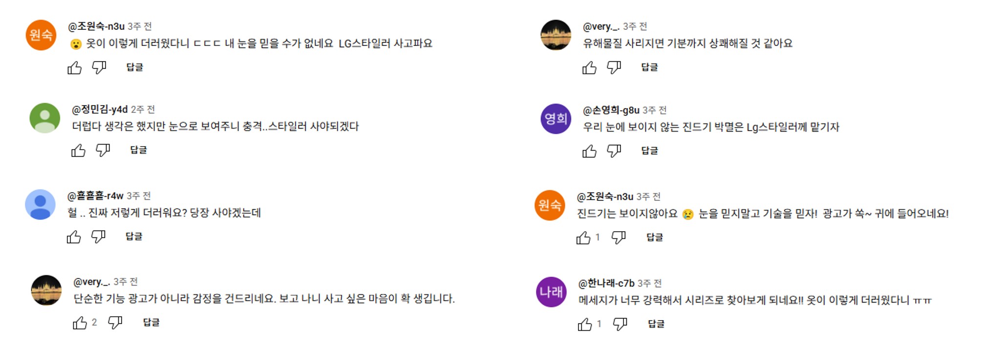 디지털 상에서 셔츠 편, 잠옷 편, 새 옷 편의 광고는 모두 높은 조회수를 기록했으며, 댓글을 통해 “지금 내 옷이 진짜 깨끗한지 다시 생각해 보게 되네요”, “무섭지만 현실적인 메시지라 공감됩니다”, “기존에는 굳이 필요 없다고 생각했는데, 사고 싶다는 생각이 들었어요” 등 자발적인 인식 전환과 구매 의향을 확인할 수 있었습니다.