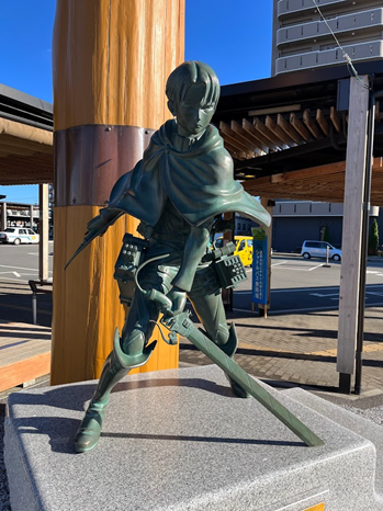 7. 기념사진 촬영: 히타역 남쪽 광장 리바이 병장 동상