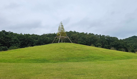 다음으로 ‘언덕의 나무’가 있는 ‘타케하라 아름다운 숲 만들기 공원’으로 이동합니다. ‘언덕의 나무’는 <진격의 거인> 이야기가 시작되고, 끝나는 지점이라고 표현해도 부족합니다. <진격의 거인> 모든 설정의 근원이자, 이 작품이 끝난 후에도 지속되는 울림을 상징하는 곳입니다. 히타 시는 <진격의 거인> 애니메이션 10주년 기념으로 아름다운 공원의 언덕에 이 나무를 심었습니다. 물론 지금은 볼품없는 나무 이기는 하나, 시간이 흐르면 작품 속에서처럼 거대한 나무가 될 것입니다. 오랜 시간이 지난 그때까지도 <진격의 거인>은 계속 회자될만한 작품입니다.
