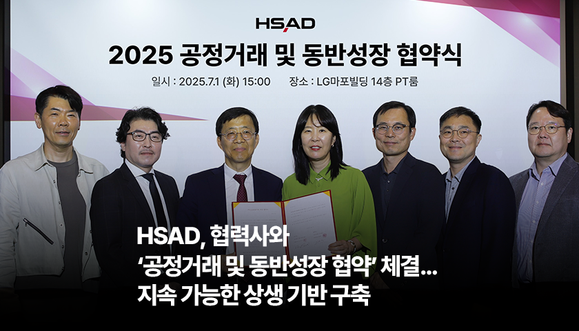 HSAD가 지난 1일, 협력사와 함께 공정한 거래 문화를 정착시키고 상생 협력을 강화하기 위한 ‘2025년 공정거래 및 동반성장 협약’을 체결했습니다.
