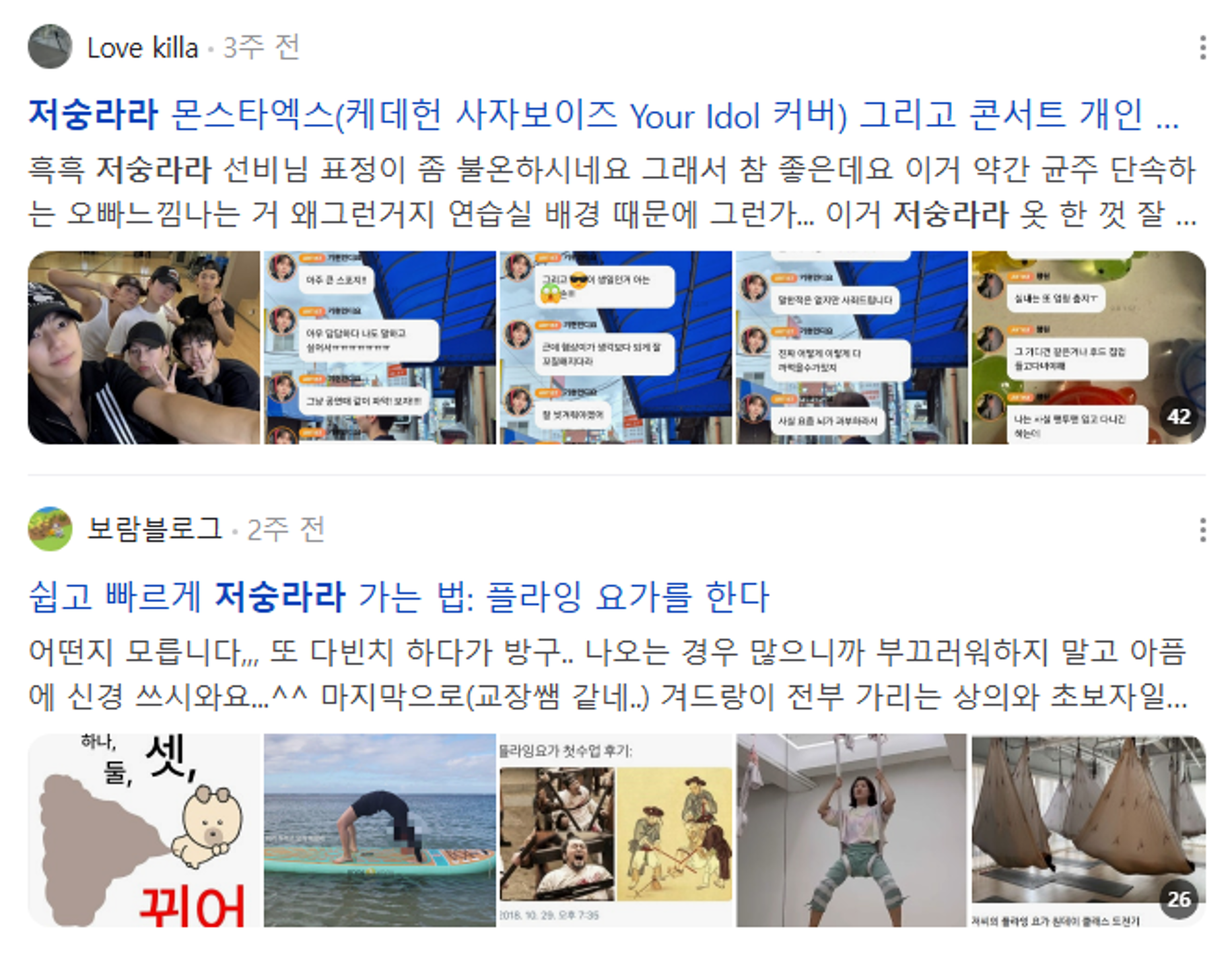 요가/필라테스가 힘들어서 저숭라라 간다, 날이 너무 더워서 저숭라라간다 등과 같은 상황에 사용이 가능하며, 넷플릭스 영화 '케이팝 데몬 헌터스'에 등장하는 '사자보이즈'와 같은 저승사자 콘셉트 또는 그러한 강렬한 모습의 연예인을 보고도 '저숭라라 간다'라고 말하기도 해요. 이러한 콘셉트를 가진 가수들의 무대를 저숭라라 무대라고 하거나, 팬사인회에서 저승사자 코스프레를 한 최애를 보고 '이런 사자님이면 바로 저숭라라 가죠'와 같이 사용하기도 해요.