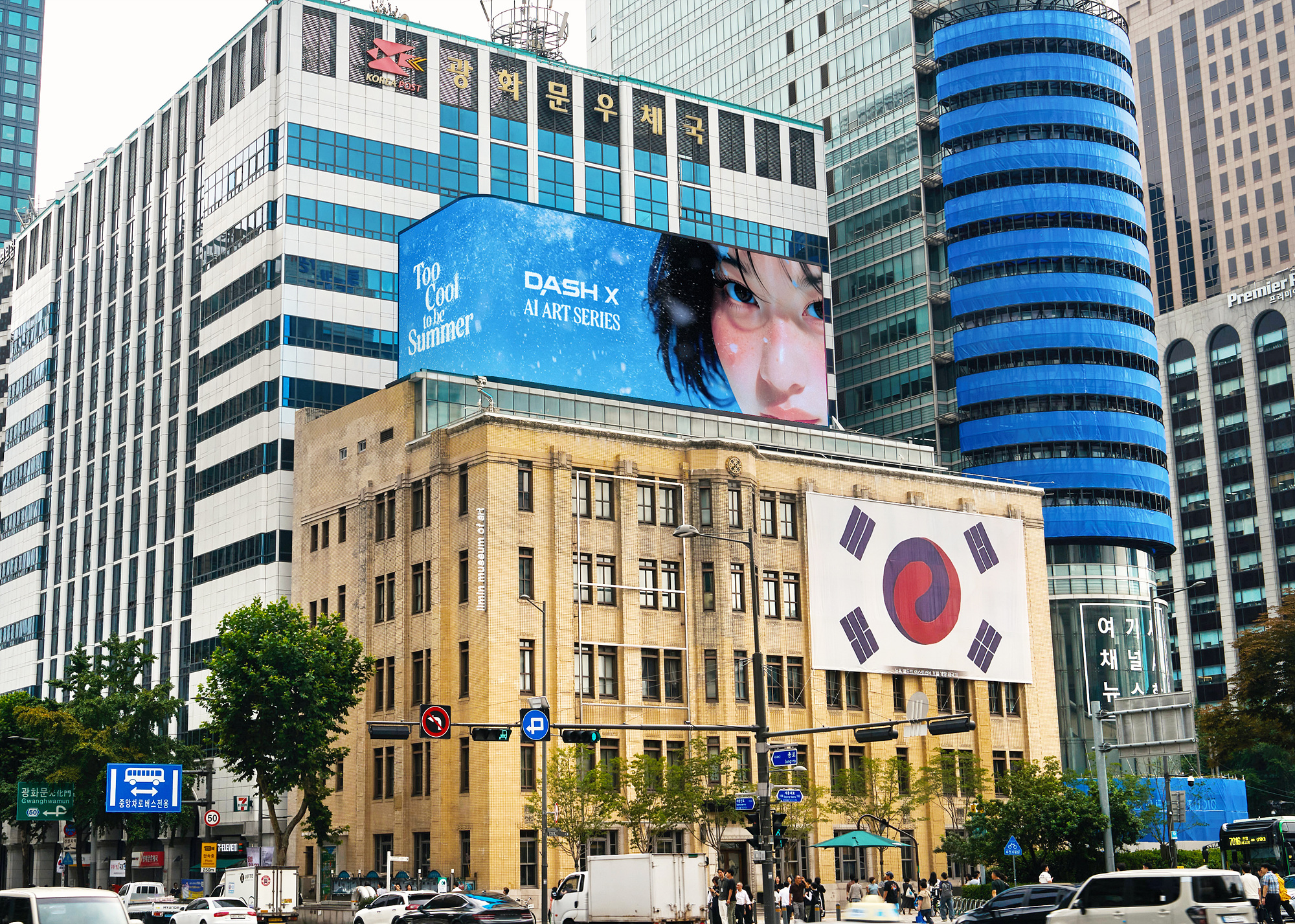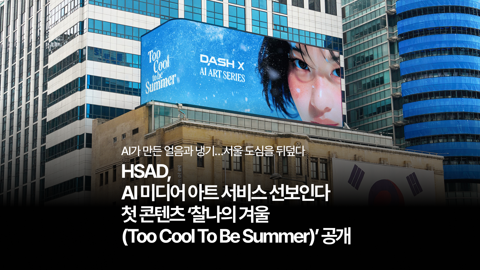 HSAD가 AI 기술을 활용한 미디어 아트 콘텐츠 ‘찰나의 겨울(Too Cool To Be Summer)’을 서울 주요 도심 지역에서 선보입니다.