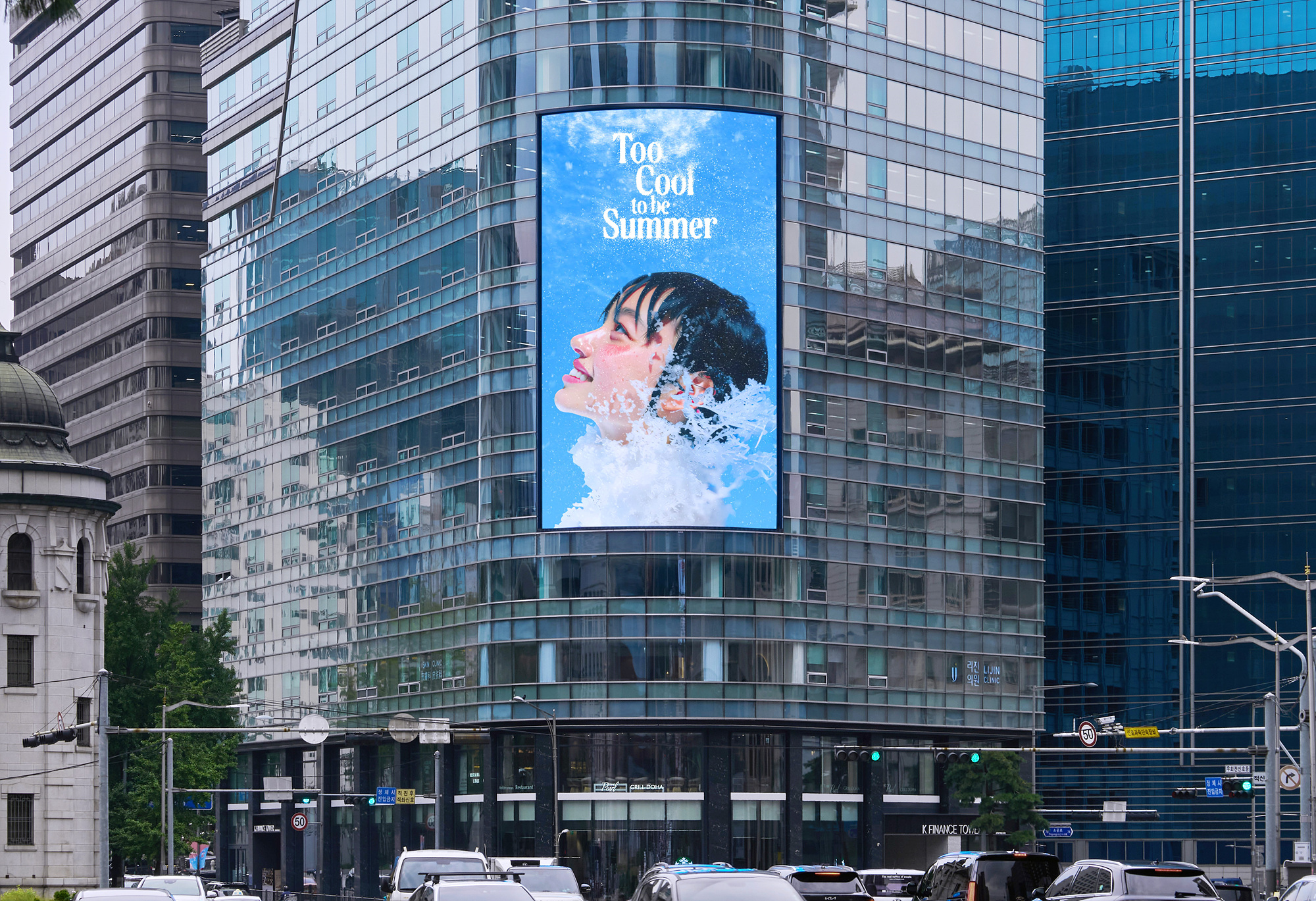영상에는 AI로 생성된 거대한 인물들이 겨울을 배경으로 등장해 시민들을 향해 손짓하거나 움직이며, 이러한 움직임마다 주변에 얼음과 눈, 냉기가 퍼지는 시각적 연출이 펼쳐집니다. 이를 본 시민들은 마치 한 여름 도심 속에서 겨울의 순간을 마주한 듯한 공감각적 시원함을 체험할 수 있습니다.