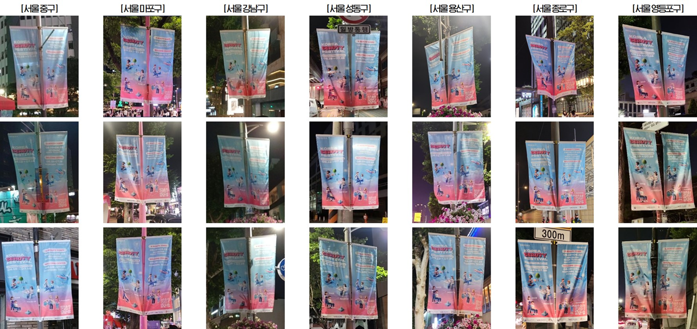 행사 분위기를 살리기 위해 코리아뷰티페스티벌 기간 전후(6/1 ~ 7/13) 행사 주요 내용 안내하는 가로등 배너 제작/운영하여 서울 시내 총 7개 지역, 19개 구간 내 가로등 배너를 총 603조 게첨하였습니다.