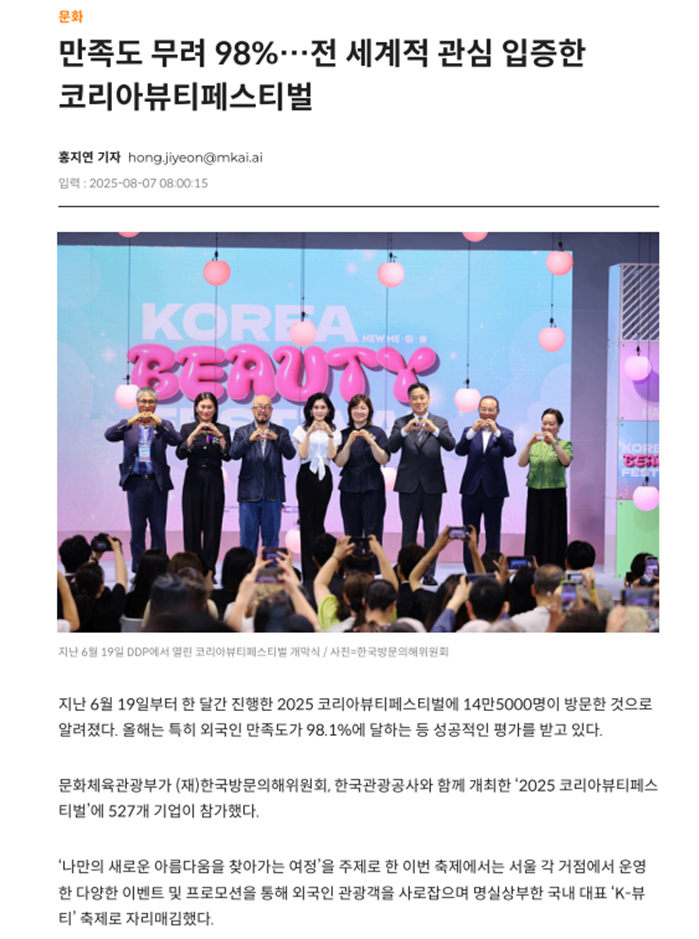 [25년 6월 한달간, 14만 5천명 방문, 서울을 K-뷰티로 들썩이게 하다!] 장마와 무더위를 잊게 한 2025 코리아뷰티페스티벌 성료