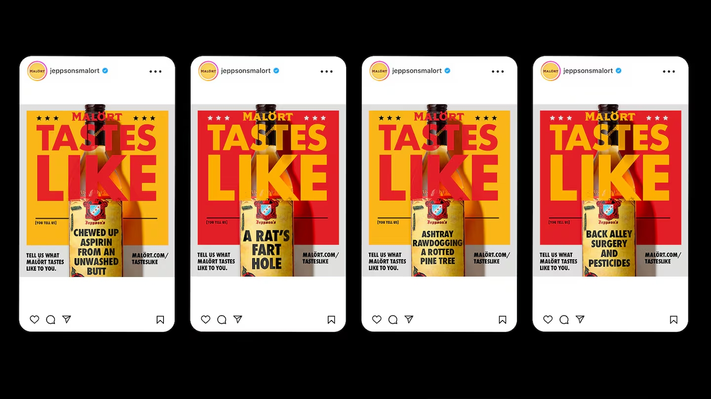 극단적인 쓴 맛으로 사람들이 혐오하는 술, Jeppson's Malort. 누군가는 이 술이 ‘고통의 통과의례’라고 표현하고 누군가는 도전의 대상이라고 합니다. 하지만 Jeppson's Molort은 오히려 맛으로 정면승부하기로 하죠. 세상의 혐오스러운 맛평가를 전면에 내세우기로 한 겁니다. 있는 그대로 신랄하게 평가하면 그중에서 최고의 표현 3가지를 선택해 실제 병 라벨로 제작할 예정입니다. 일명, “Malort Tastes Like" 캠페인. 하지만 참여한 소비자들의 평가는 결코 녹록지 않습니다.