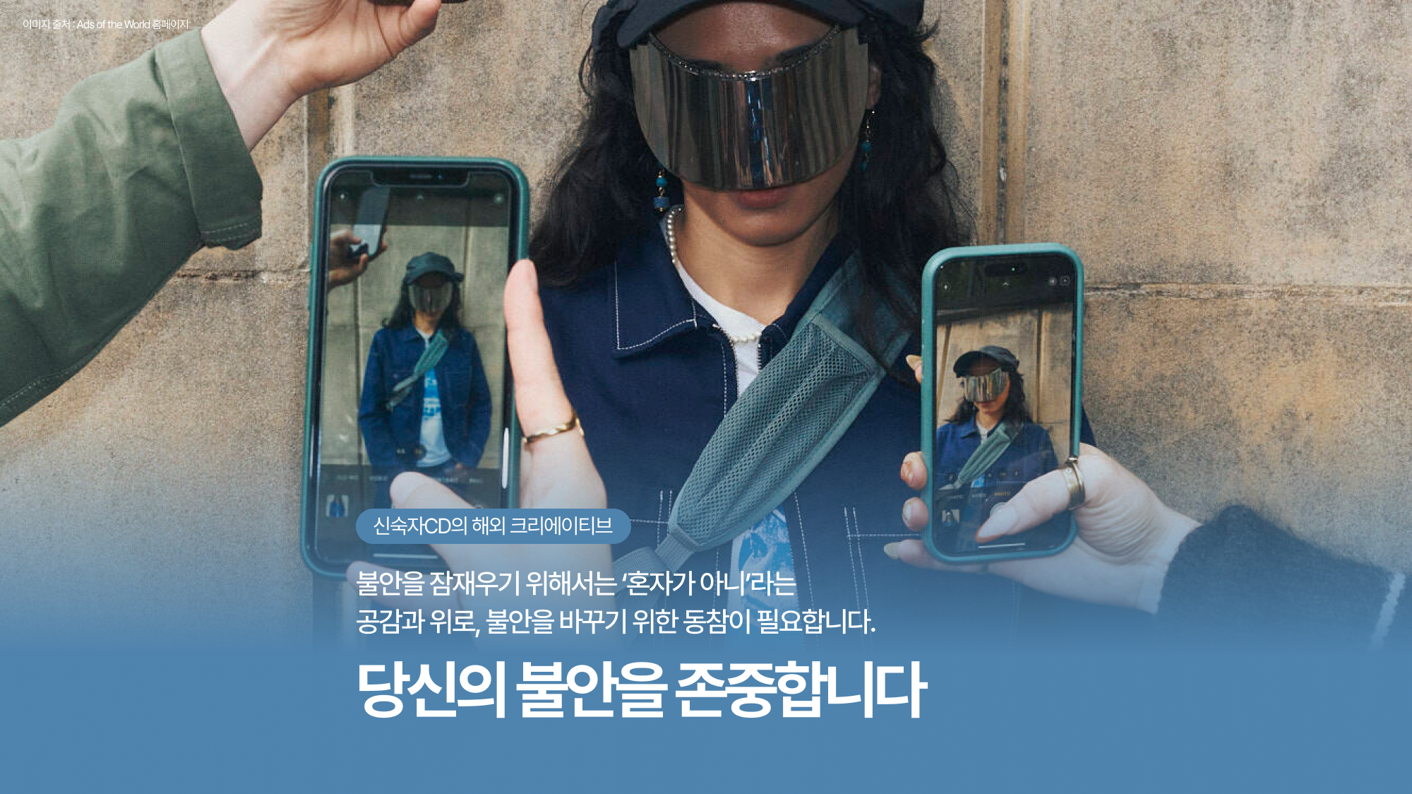 AI로 직업이 없어지는 건 아닐까? 앞으로 코인은 어떻게 될까? 환경은 계속 나빠질까? SNS를 보면 다 잘 살고 있는 것 같은데 나는 왜 이럴까? 몸이 안 좋은데 괜찮을까? 현대는 계속 새로운 불안을 안겨주고, 사람들은 일상 속 다양한 불안을 마주합니다. 불안을 잠재우기 위해서는 ‘혼자가 아니’라는 공감과 위로, 불안을 바꾸기 위한 동참이 필요합니다. 이에 브랜드는 때로는 과감하게 때로는 위트 있게 이야기를 꺼냅니다.