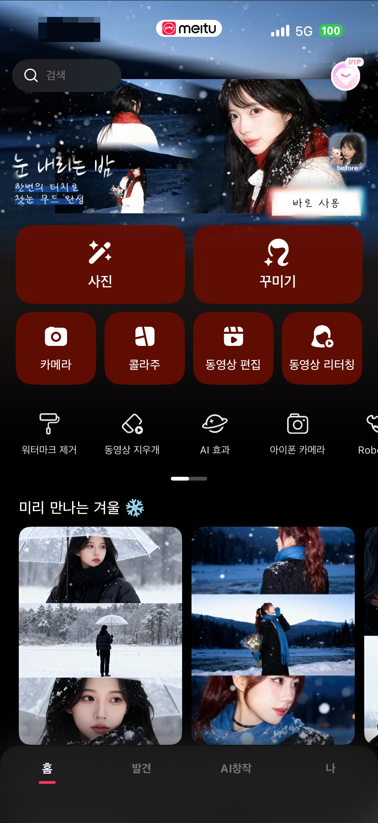 최근 인스타그램에 '눈 내리는 배경에서 찍은 사진 3분할 사진'이 자주 보이지 않나요? 바로, '메이투'라는 어플 속 AI 프로그램을 사용한 이미지예요! 주로 인물 또는 반려동물에게 많이 사용하는 모습을 쉽게 볼 수 있는데요. 생물 외에도 곱창볶음 등 음식이나 물건으로 이미지를 생성하는 사람도 많다고 해요.