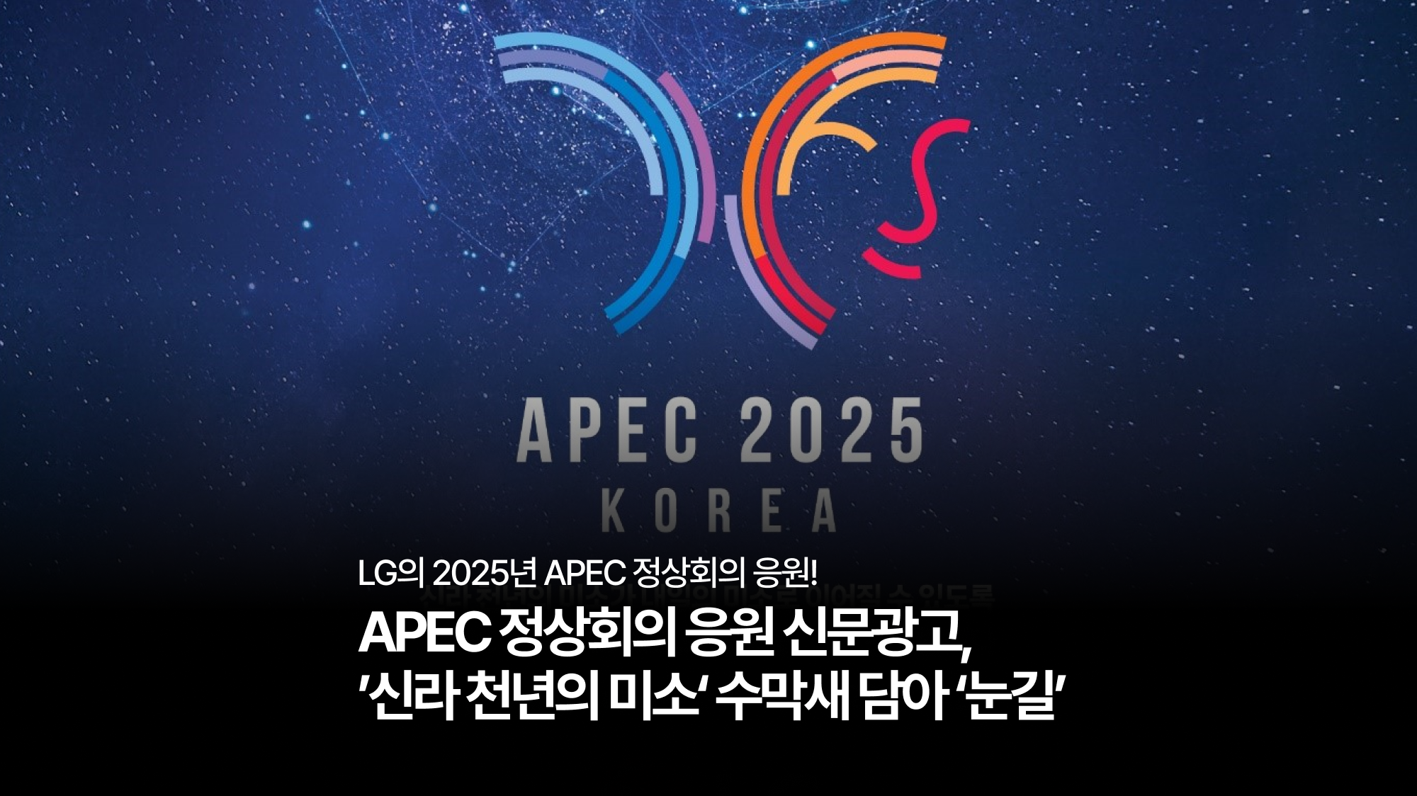 LG 관계자는 "APEC 2025 KOREA의 성공적 개최를 응원하며 이번 광고를 준비했다"며 "수막새에 담긴 신라 천년의 미소처럼 밝은 웃음을 고객에게 선물할 수 있도록 LG는 혁신을 지속 이어가겠다"고 밝혔습니다.
