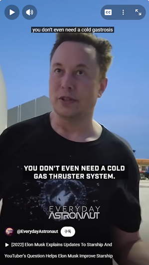 일론 머스크는 테슬라도 매우 성공적인 기업으로 일궈냈지만, 우주공학 분야에서도 NASA도 해내지 못한 정말 말도 안 되는 기술인 로켓 재사용 기술을 상용화시켜 인류를 우주여행의 길로 한 발짝 더 앞서게 만든 SpaceX를 창업하고 일궈냈습니다. 일론 머스크가 Tim Dodd라는 유튜버와 인터뷰를 했을 때의 일입니다. Tim Dodd는 NASA 출신도 아니고 항공우주공학 학위도 없지만, 로켓에 대한 열정으로 엄청난 독학을 한 사람이었습니다. 그가 일론에게 물었습니다. "왜 별도의 냉각 가스 시스템이 필요한가요? 그냥 메인 엔진의 여분 가스를 쓰면 안 되나요?"