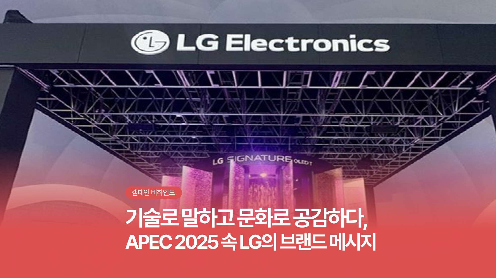 APEC CEO SUMMIT에서는 아시아·태평양 지역 최고위급 경제 포럼이라는 상징적인 무대에서 LG그룹의 기술력과 브랜드 비전을 단순한 제품 나열이 아닌 통합된 혁신 철학으로 전달해야 하는 과제를 받았습니다.