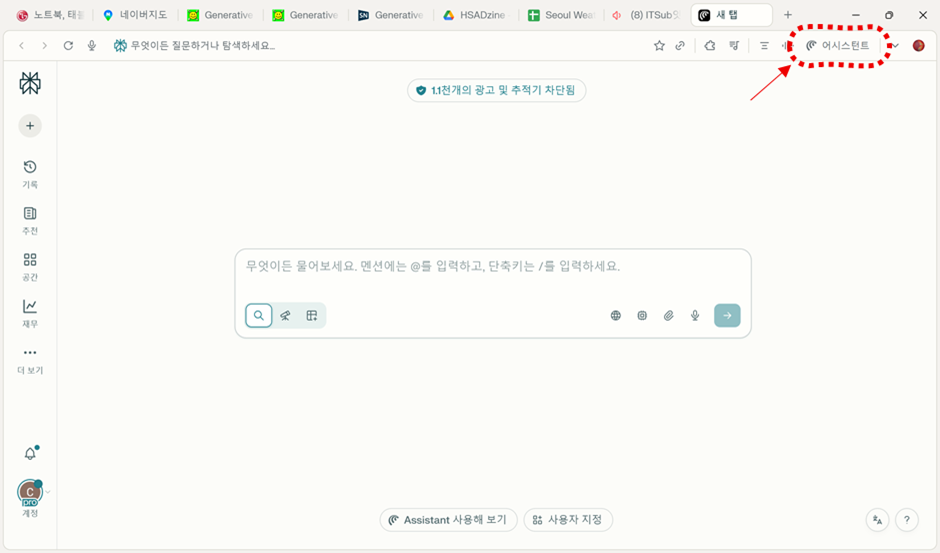 먼저 기본적인 사용 방법을 말씀드리겠습니다. 채팅 자체는 ChatGPT와 사용하는 방법은 거의 같습니다. 크롬이나 엣지와 같은 브라우저에 ChatGPT 같은 서비스가 얹어졌다고 보시면 되겠습니다. 하지만 특정 페이지에 들어가서 오른쪽 위의 어시스턴트 버튼을 누르면 완전 새로운 AI Agent 세상이 펼쳐집니다! 그럼 브라우저에서 사용하는 지메일, 캘린더를 포함해 모든 것이 일일이 스크린샷 찍어서 물어볼 필요 없이 즉시 AI와 대화를 통해서 클릭도 하지 않고 브라우저를 조종할 수 있습니다.