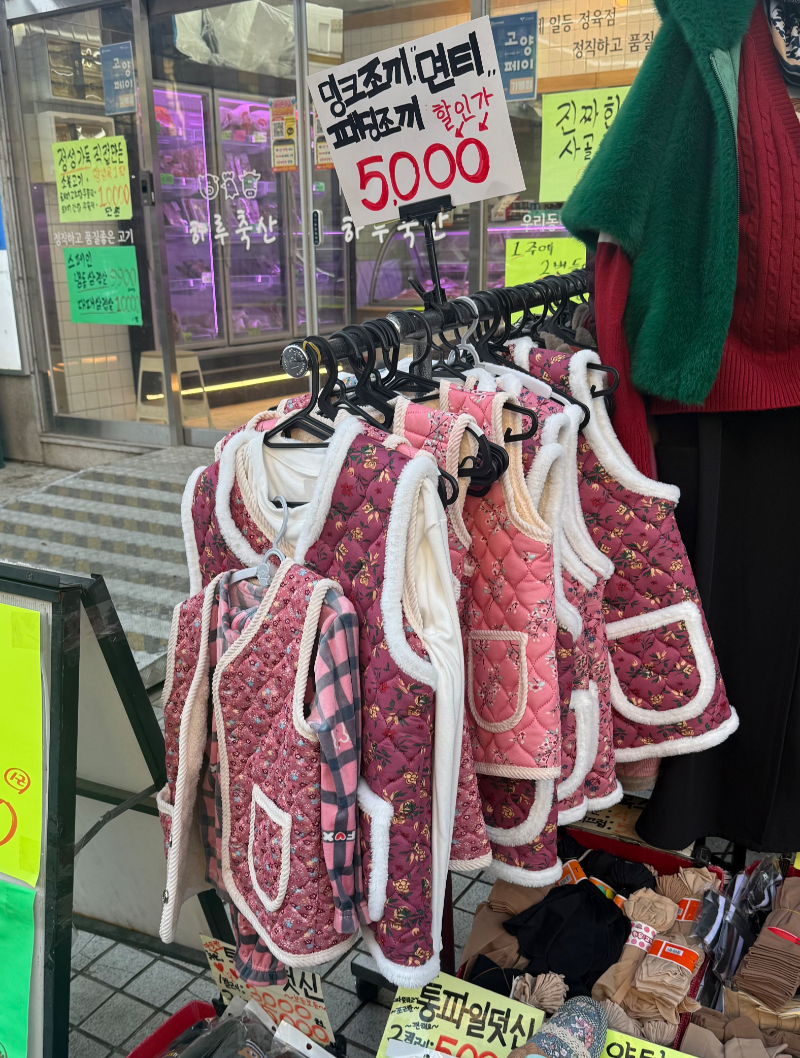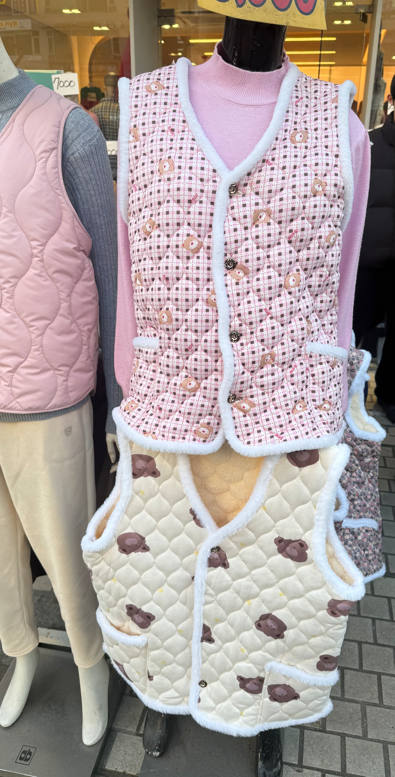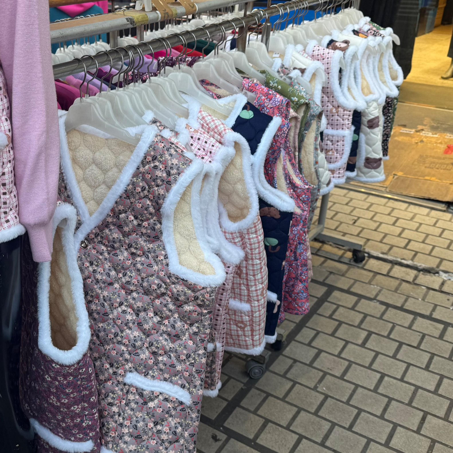 단순한 꽃무늬를 넘어 곰돌이, 하트 등의 다양한 무늬로 출시되며 촌스러운 디자인이라는 의식도 많이 사라졌어요. 하지만 뭐니뭐니해도 꽃무늬의 분홍, 빨강, 보라색 등의 강렬한 색을 가진 김장조끼가 제일 매력 있는 디자인이라고 생각해요!