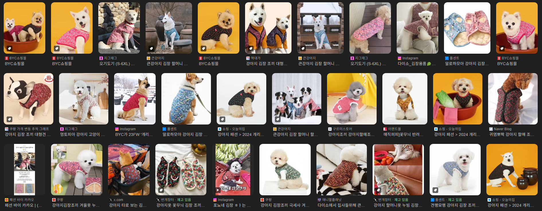 이러한 김장조끼는 에스파의 카리나, 블랙핑크의 제니 등 아이돌이 착용 인증샷을 올리며 더 큰 화제가 되었는데요. 아이돌뿐만 아니라 강아지용 김장조끼도 출시되며, 강아지와 커플룩을 위해 김장조끼를 구매하는 사람도 늘고 있다고 해요.
