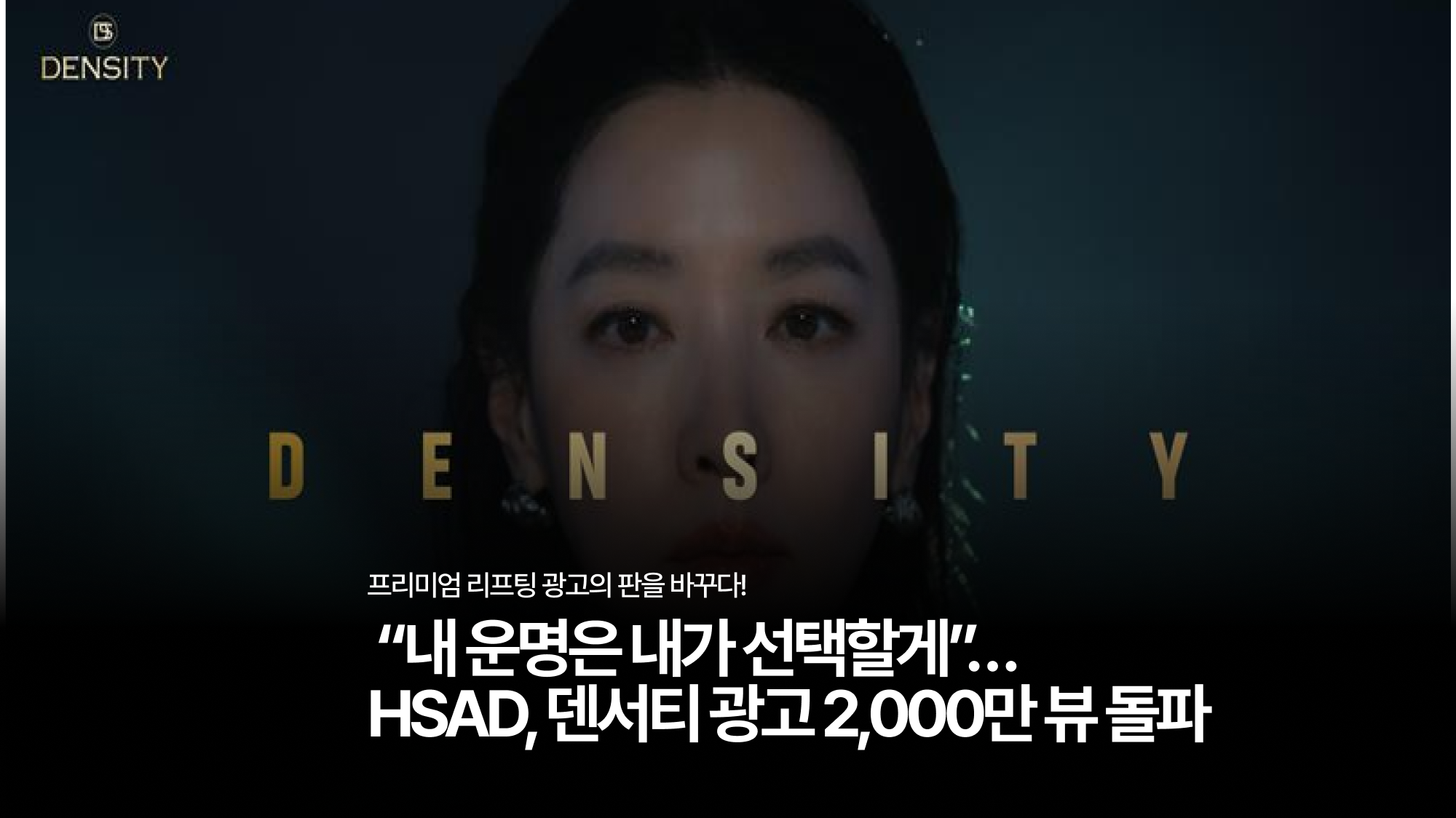 HSAD가 제작한 고주파 리프팅 의료기기 ‘덴서티(DENSITY)’의 신규 광고 캠페인이 론칭 3주 만에 누적 조회수 2,000만 뷰를 돌파했다고 9일 밝혔습니다.
